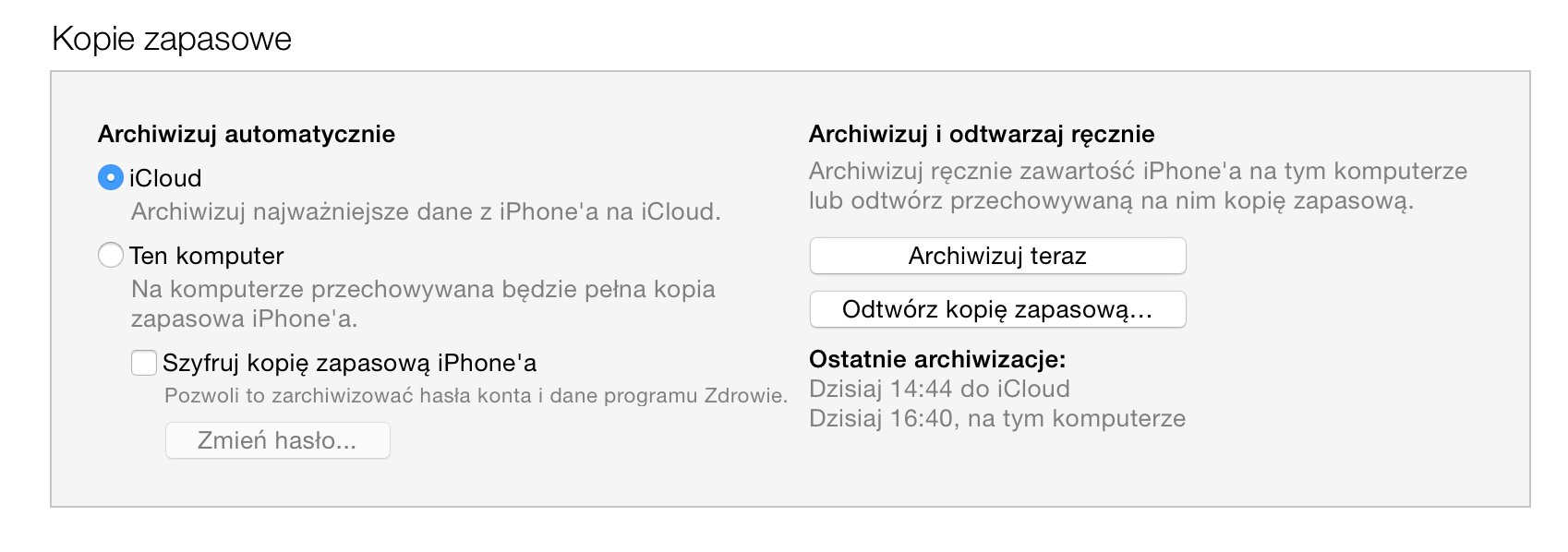 Chcąc wykonać archiwizację na komputerze, uruchom iTunesa, wybierz kartę swojego urządzenia i skorzystaj z przycisku Archiwizuj teraz.