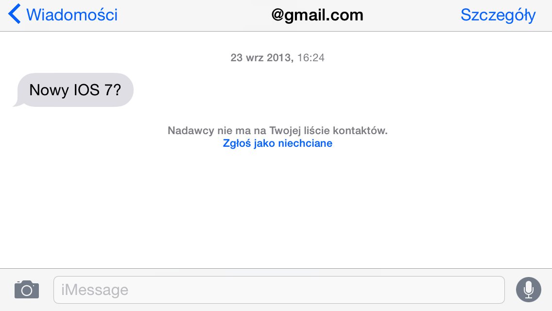 Chcąc natomiast zgłosić Apple’owi spam, wystarczy pod ostatnią wiadomością nieznanego nadawcy nacisnąć przycisk Zgłoś jako niechciane: