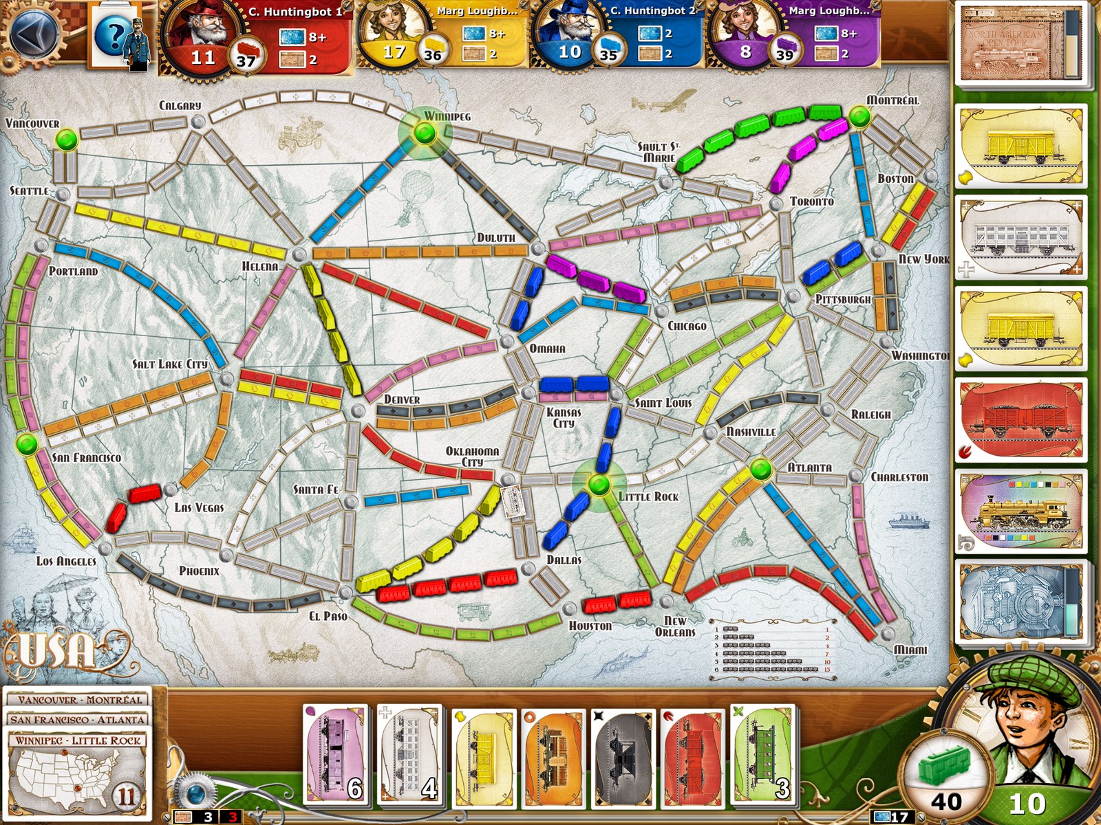 Grą Ticket to Ride, Allan A. Moor zapoczątkował całą serie familijnych gier planszowych o budowie sieci kolejowej w różnych częściach świata. Każdy z graczy otrzymuje kilkadziesiąt wagoników oraz karty biletów i wagonów. Podczas rozgrywki będzie dobierał nowe karty i budował połączenia między miastami na mapie i realizował trasy wyznaczone przez karty biletów, by zdobyć jak największą liczbę punktów. Poznanie zasad Ticket to Ride zajmuje dosłownie 5 minut a rozgrywka na tablecie jest jeszcze bardziej dynamiczna, niż w analogowej wersji i spokojnie można rozegrać pełną partię w 20 minut! Dostępne dodatki umożliwiają rozgrywkę na nowych mapach (Europa, Azja, Szwajcaria), a także rozszerzają zasady podstawowej wersji. O tym, że jest to tytuł który warto poznać niech świadczy fakt, że choć minęły już 4 lata od premiery aplikacji, bez żadnego problemu można znaleźć graczy do rozgrywki online. Jeżeli jeszcze nie jesteście pewni czy rzeczywiście warto, przeczytajcie naszą recenzję Ticket to Ride, którą opublikowałem na appManiaKu.