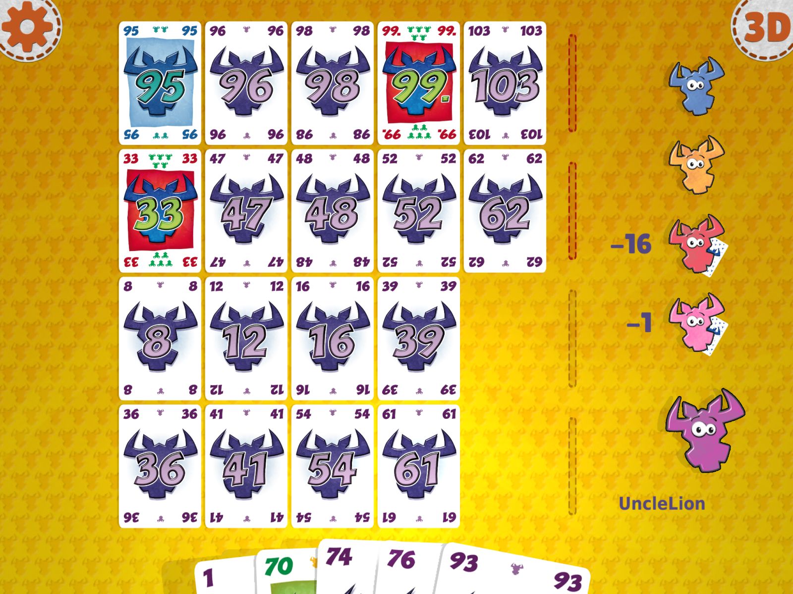 6 Bierze! to prosta i szybka gra karciana Wolfganga Kramera. Każdy z graczy otrzymuje 10 kart na których znajdują się wartości od 1 do 104. W swojej rundzie gracze jednocześnie wybierają jedną ze swoich kart i dokładają ją do jednego z rzędów zachowując następujące zasady: różnica między kartą dokładaną a ostatnią w rzędzie musi być najmniejsza, jeżeli musimy dołożyć kartę o wartości niższej, lub dokładamy 6 kartę, musimy zabrać wszystkie karty z danego rzędu. Wygrywa ten, kto na koniec gry będzie posiadał najmniej symboli głów byków, które znajdują się na kartach. I to już wszystkie zasady, które musimy znać. Zabawa szybka, w której nasze zwycięstwo nie zależy tylko od losu, ale także umiejętnego planowania i przewidywania ruchów przeciwnika. Na koniec warto dodać, że aplikacja jest w pełni spolszczona.