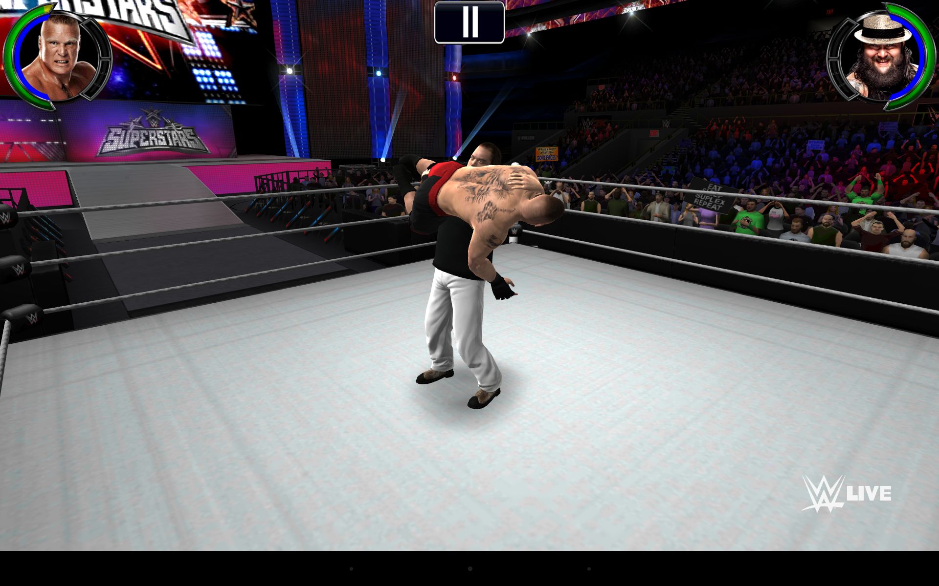 Pod względem wizualnym WWE 2K również prezentuje bardzo wysoki poziom wykonania. Efektowne wejścia zawodników jako żywo przywodzą na myśl okropnie długi teatrzyk odbywający się przed rozpoczęciem walki, a w trakcie potyczki widać dbałość twórców o odwzorowanie zachowań i bojowych nawyków największych gwiazd wrestlingu, zwłaszcza w kontekście ich firmowych ciosów. Grę należy także pochwalić za bardzo ładną i płynną animację zawodników oraz bardzo dobrą pracę kamery – nie zabrakło także efektownych najazdów kamery podczas wykonywanych przez nas finiszerów, a publika (przynajmniej ta zgromadzona w pierwszych rzędach) żywiołowo reaguje na nasze poczynania na ringu.