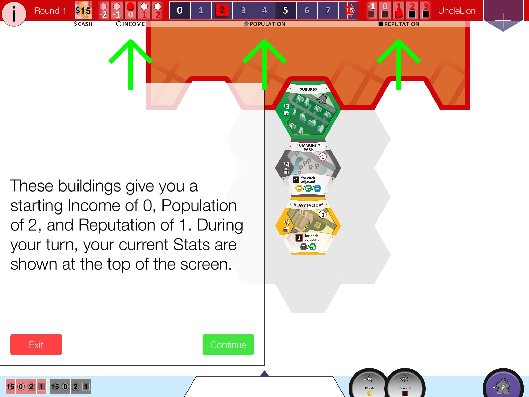 Wreszcie tutorial, który teoretycznie tłumaczy wszystkie reguły panujące w grze. Jednak po zapoznaniu się z nim, sposób liczenia poszczególnych wskaźników może budzić wątpliwości. Dlatego naprawdę zachęcam do sięgnięcia po instrukcję planszowej wersji Suburbii, tym bardziej, że polski wydawca udostępnia ją w formie pdfa dostępnego na stronie internetowej Planszóweczki.
