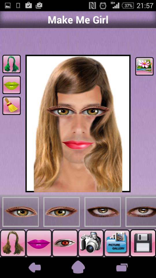 Na powyższą aplikację natrafiłem zupełnie przypadkowo i całe szczęście dla mnie, ponieważ pasuje do tego zestawienia jak ulał. Tytuł (tak jak w powyższych przypadkach) nie skrywa tajemnicy. Dzięki przywołanemu narzędziu, po załadowaniu zdjęcia możemy uczynić z siebie… niewiastę. Zmiana fryzury, koloru oczu czy też modulacja ust (z rozmaitymi szminkami w standardzie), tak po krótce przedstawia się ta magiczna aplikacja. Dodatkowo, gdy już skończymy przemianę jest możliwość udostępnienia nowego wizerunku na np. Facebook’u. Jak wspominają twórcy, aplikacja jest zarówno dla kobiet i mężczyzn, jednak ja mam nieodparte wrażenie, że nie kobiety są tu najważniejsze. Aplikacja złoto… dla transwestytów. 🙂