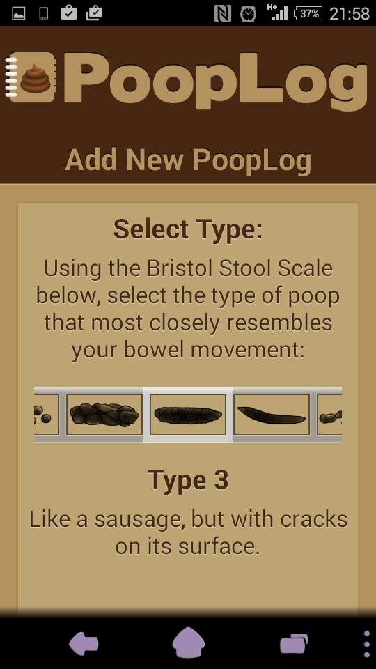 Po raz kolejny (i ostatni) w tym zestawieniu mamy do czynienia… ze stolcem. Do czego służy aplikacja? Do prowadzenia dziennika wypróżnień. A wszystko to według bristolskiej skali uformowania stolca (to nie żart jakby się mogło wydawać). Dane możemy uzupełnić o wielkość, czas wypróżnienia, dołączyć notatkę, zdjęcie(?!), a nawet podzielić się informacjami ze znajomymi na Facebook’u lub Twitterz. Z dostępnych w sieci informacji wynika, że aplikacja może poinformować użytkownika kiedy (po analizie danych) dojdzie do wniosku, że coś jest nie tak jak być powinno, a co za tym idzie zasugeruje, że może to oznaczać jakieś problemy zdrowotne. Ten nietypowy dziennik możemy prowadzić w każdym momencie. Dzienniki jak widać są na każdą okazję. Motyw przewodni aplikacji kolorystycznie nawiązuje do przedmiotu analizy. Naprawdę g… gruba sprawa. Aplikacja dostępna jest za darmo w sklepie Google Play.