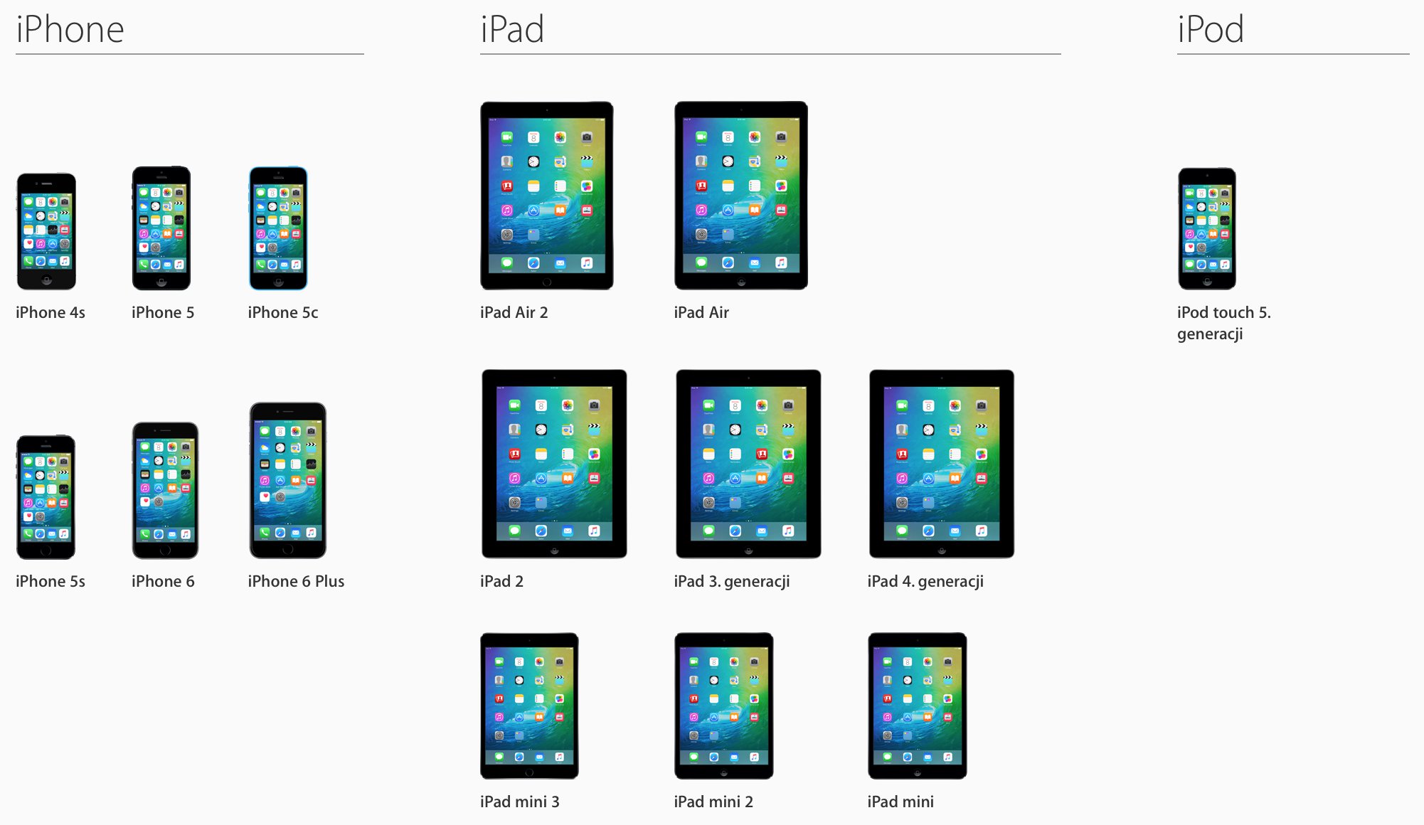 Do zainstalowania iOS 9 kwalifikują się następujące urządzenia (kliknij na grafice, aby ją powiększyć):
