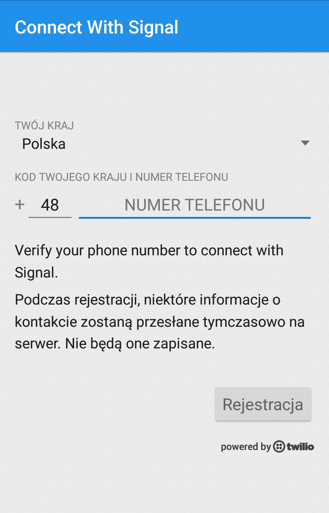 Signal to prosta aplikacja, która może być alternatywą dla wbudowanego w Wasze urządzenia komunikatora tekstowego. Jednocześnie program zajmuje mało miejsca oraz jest stworzony zgodnie z filozofią Google – Material Design. Po zainstalowaniu i uruchomieniu Signala aplikacja poprosi nas o zweryfikowanie tożsamości za pomocą konkretnego kodu przesłanego wiadomością SMS. W tym przypadku jest to jedyny moment, w którym nasze dane zostają zapisane na zewnętrznym serwerze. Ciężko stwierdzić czy twórcy faktycznie usuwają naszą tożsamość po pewnej chwili czy też lądujemy w jakimś pliku tekstowym – tego niestety nie mam jak sprawdzić.