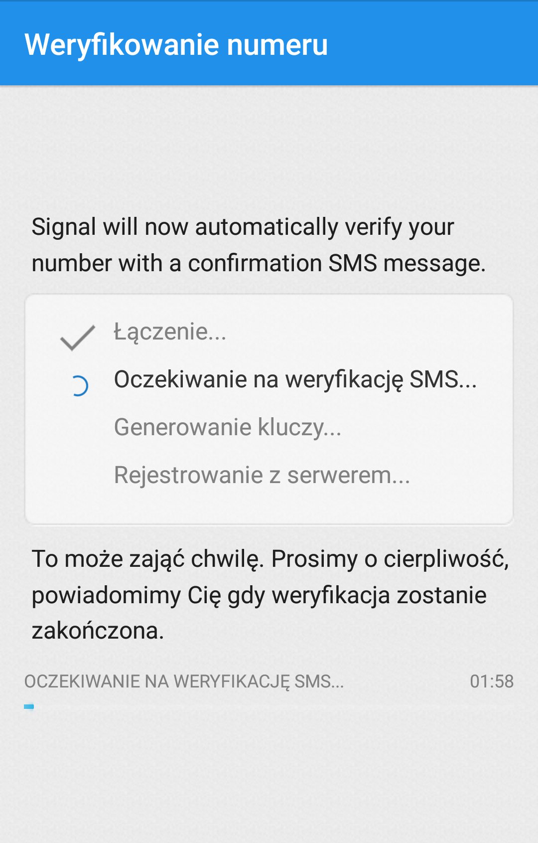 Kiedy SMS do nas dotrze, aplikacja wykona resztę zadań automatycznie: zweryfikuje wiadomość, pobierze odpowiedni, indywidualny odcisk klucza oraz zarejestruje nas jako nowego użytkownika na serwerze. Całość zajmuje mniej niż minutę i po tej operacji będziemy mogli swobodnie przejść do głównego menu.