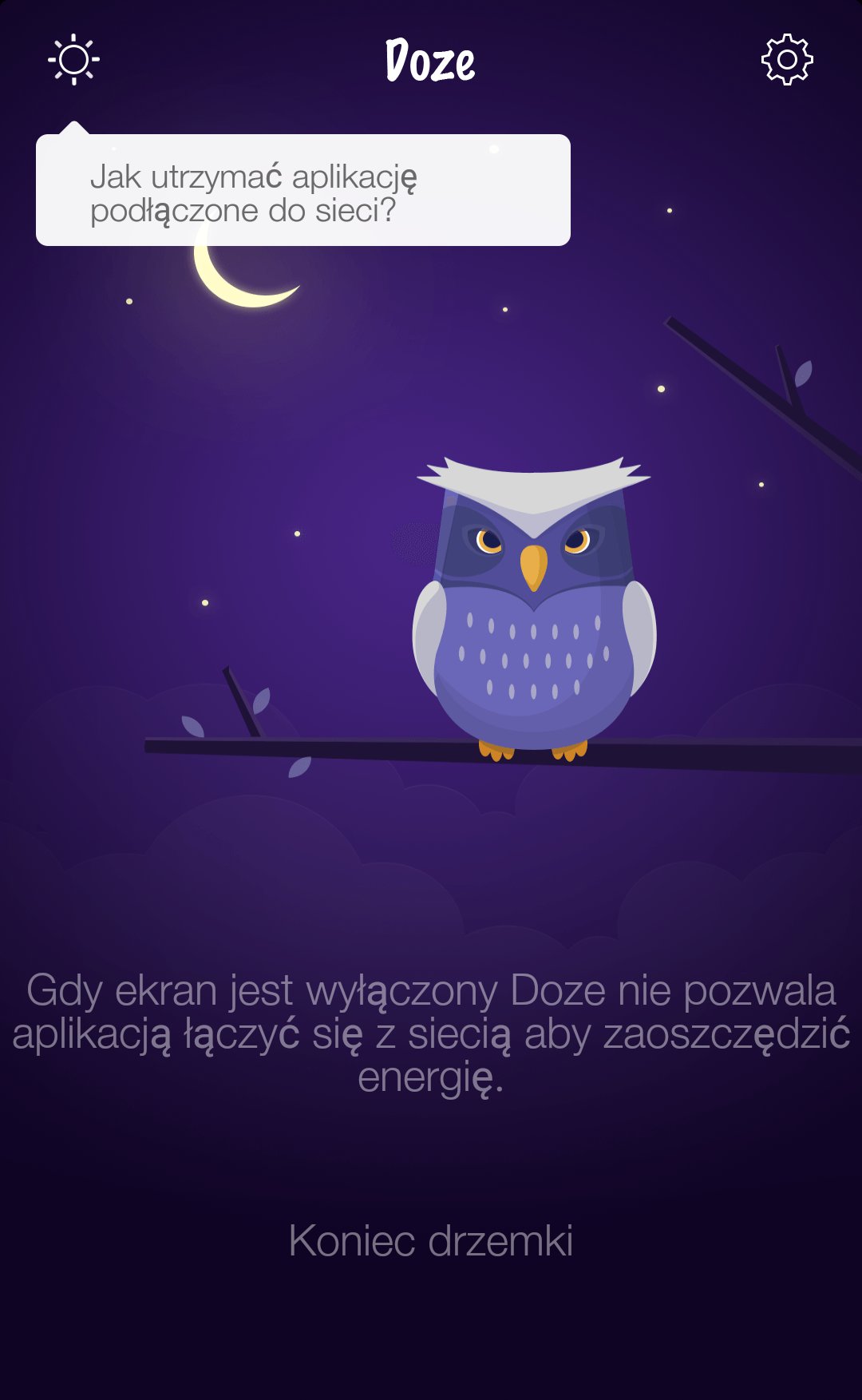 Drzemkę i powrót do pełnego funkcjonowania urządzenia możemy zakończyć przyciskiem oznaczonym jako Koniec Drzemki. Noc znów zamieni się w dzień a nasze aplikacje będą ponownie działać. Doze to aplikacja, która nie jest skomplikowana i bardzo łatwo skonfigurować ją według własnych potrzeb. Dla kogo jednak tak naprawdę przeznaczona jest ta aplikacja?