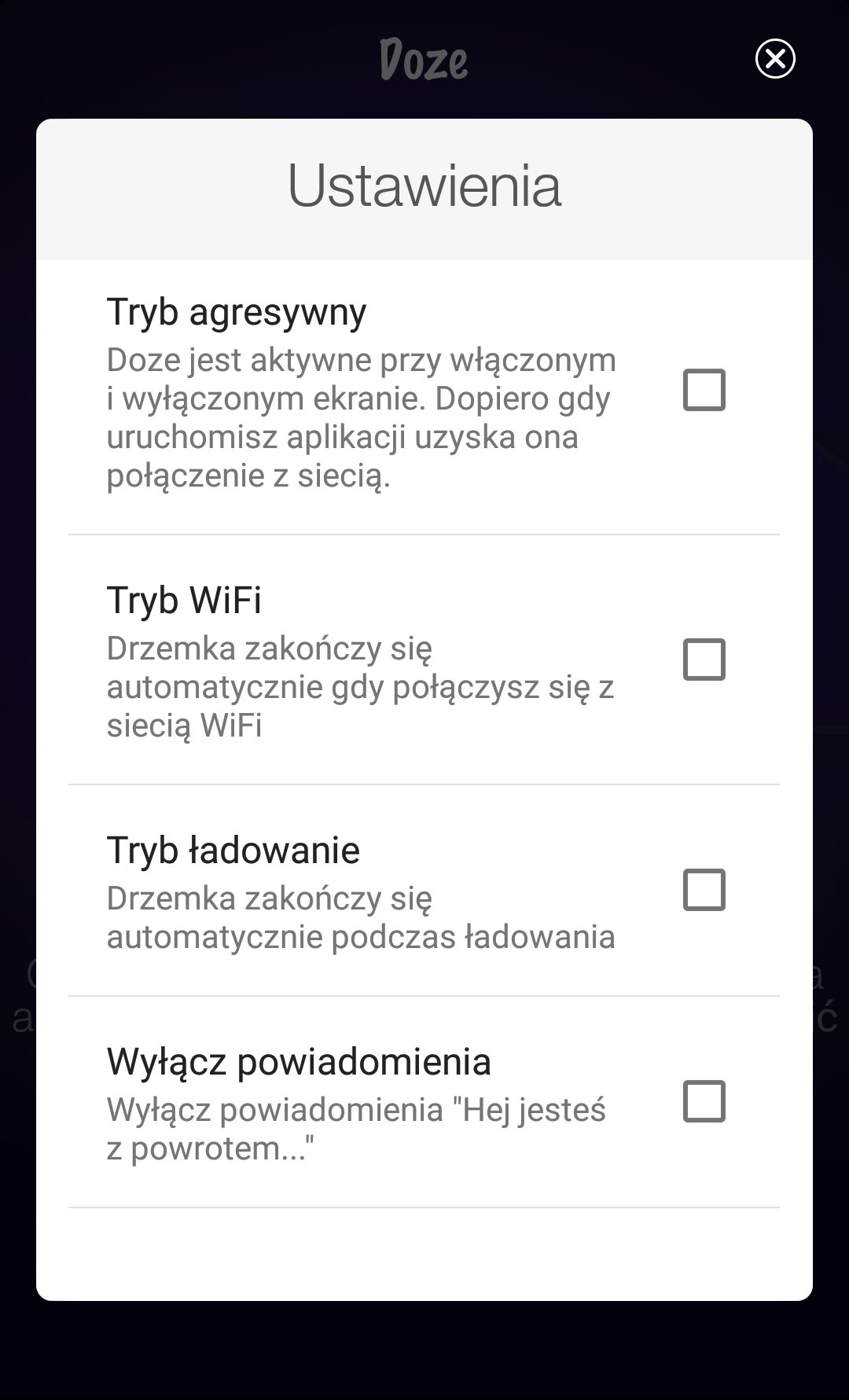 Doze sprawdzi się idealnie w przypadku użytkowników smartfonów różnych marek, które nie zaimplementowały do swoich wersji Androida żadnego trybu oszczędzania energii. Aplikacja działa bardzo podobnie do trybu STAMINA oraz programu Greenify i skutecznie „zamraża” procesy działające w tle. Po testowaniu jej na moim urządzeniu jestem w stanie jednoznacznie stwierdzić, iż faktycznie procenty na pasku baterii uciekały znacznie wolniej kiedy mój ekran był wyłączony lub chwilowo trzymałem urządzenie w kieszeni.