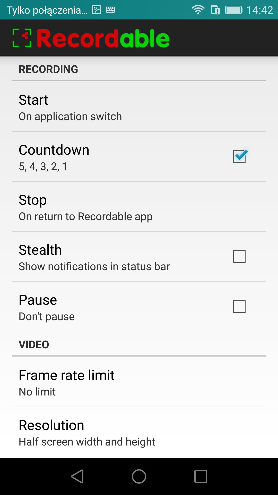 Protoplastą programów do nagrywania obrazu z urządzeń mobilnych z Androidem jest aplikacja Recordable – był to bodajże pierwszy program, który umożliwiał zgrywanie wideo bez konieczności wykonania roota. Lata jednak lecą, a program przestał się rozwijać. Podobnie jak w przypadku Mobizena, również i tu konieczna jest aktywacja apki za pośrednictwem połączenia z pecetem. Co gorsza, program ma wyraźne problemy ze współpracą z urządzeniami mniej znanych producentów – w takich wypadkach regularnie można zaobserwować problemy z parowaniem.