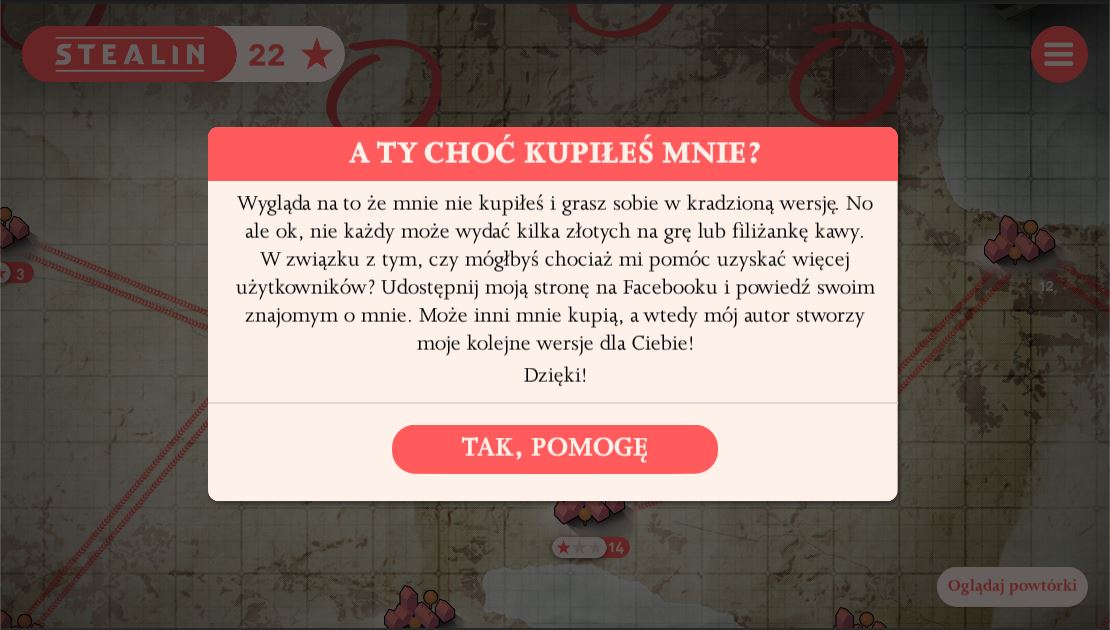 Wczoraj miałem niewątpliwą przyjemność zrecenzowania prostej, acz mocno absorbującej strategii z elementami zręcznościowymi i logicznymi, czyli Stealin. Ta naładowania oryginalnym humorem produkcja to dzieło niewielkiego, dwuosobowego Binary Banana co jasno wskazuje na to, że każda kolejna premiera to dla tego studia spore wydarzenie i jednocześnie szansa na sfinansowanie kolejnych projektów. Trzeba przyznać, że gra odniosła dość spory sukces – w polskim Google Play gra kolejny dzień z rzędu jest na topie płatnych gier strategicznych, mieści się także w pierwszej pięćdziesiątce najlepiej sprzedających się gier w USA. Jest jednak druga strona medalu – ta związana z niespotykanym wręcz poziomem piractwa tego tytułu, o czym otwarcie mówi nam Jacek Ciereszko, twórca gry: