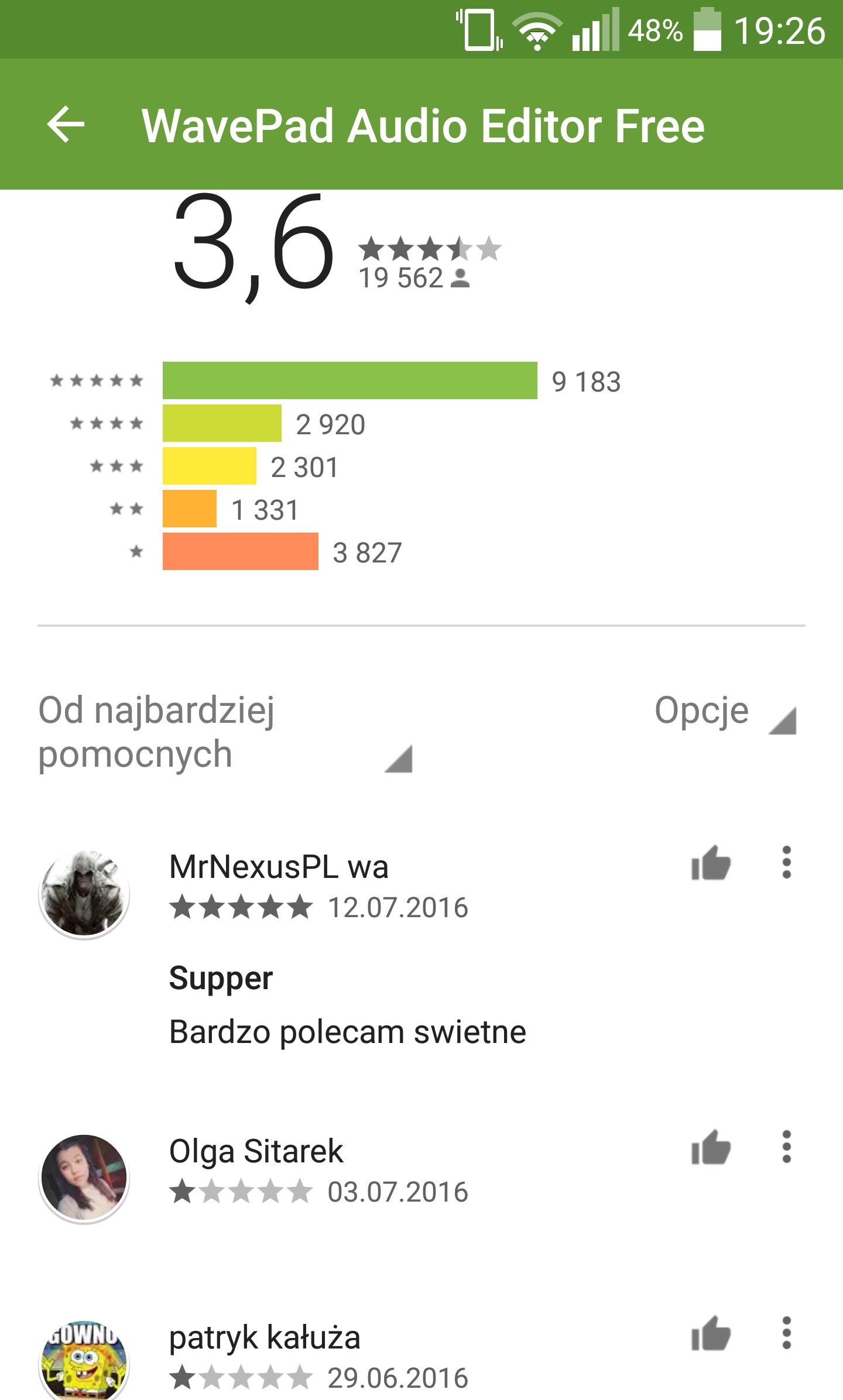 Pomimo tego, że WavePad Audio Editor nie szczyci się najlepszą średnią arytmetyczną ocen, wszystkie konstruktywne opinie chwalą tę aplikację. Jest to bowiem kompromis pomiędzy prostym interfejsem, a ilością dostępnych funkcji, które czynią z produktu NCH Software bardzo praktyczną pozycję. O ile nie przepadam za innymi wyrobami tego producenta, m.in. za odpowiednikiem WavePada, MoviePadem wywierającym ogromny ciężar na pamięci operacyjnej naszego urządzenia mobilnego, Audio Editor jest strzałem w dziesiątkę.