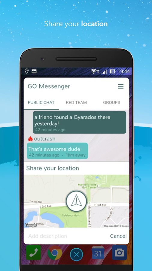 Wszyscy chcą kuć żelazo, póki gorące – nawet tak popularny producent sprzętu i oprogramowania, jak Razer. RazerGO to bardzo przejrzysty i użyteczny komunikator, w którym możemy dyskutować z innymi PokemaniaKami, dzielić się miejscami w których znajdujemy Pokemony czy też informować innych o ciekawych miejscach związanych z tą grą. W aplikacji możemy określić teren, w którym aplikacja znajdzie potencjalnych rozmówców, w promieniu od kilkuset metrów do nawet kilkuset kilometrów. Co więcej, możliwe jest także prowadzenie rozmów zarówno na kanale ogólnym, jak również w pokoju dedykowanym dla każdego teamu – z pomocą tego programu znacznie łatwiejsze będzie więc przygotowanie ataku na wybrany Gym bez konieczności informowania o tym wrogiego zespołu.