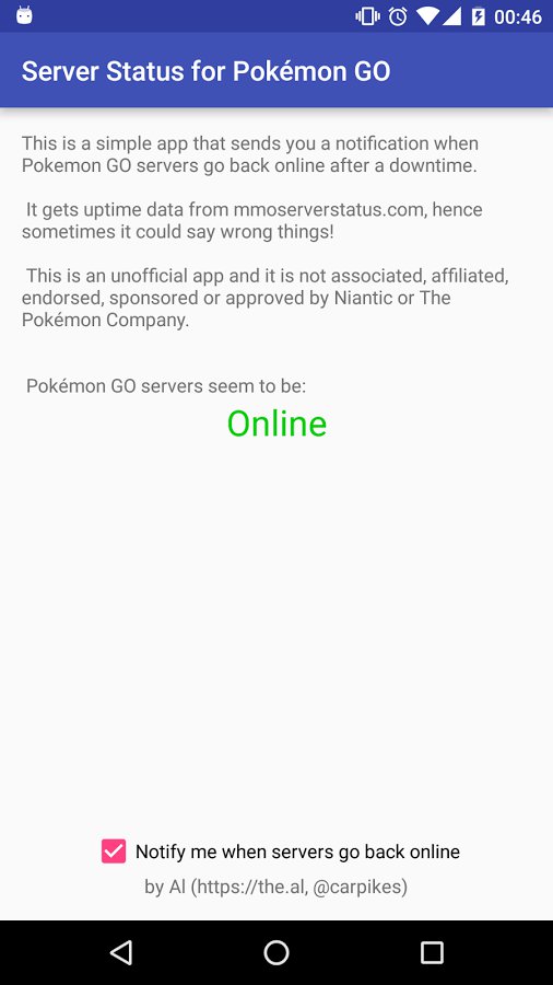 Problemy z serwerami to coś, co spędza sen z powiek wielu graczy – każdy wzięty miłośnik Pokemon GO regularnie natrafia na kwestie związaną z brakiem możliwości połączenia z tym tytułem i, tym samym, pozbawieniem nas możliwości złapania kolejnych Pokemonów. Zanim odpalimy grę, warto skorzystać ze specjalnej aplikacji która pokaże nam, kiedy możemy bez obaw spróbować wejść do gry. Aplikacja uruchamia się znacznie szybciej niż sama gra, dlatego też nie tracimy bezsensownie czasu na kolejne próby zalogowania się do produkcji studia Niantic.