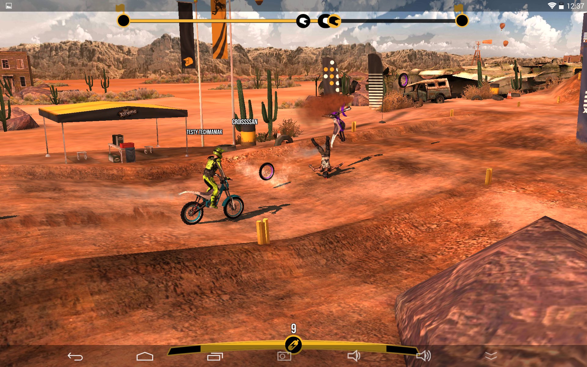 Pierwszą z nich jest Dirt Xtreme – bardzo ładnie wyglądająca przyjemna zręcznościówka z motocyklami w roli głównej. Gra oparta została na bardzo prostym koncepcie zabawy – gracz w trakcie jazdy po wyboistym torze musi utrzymać motocykl w odpowiednim położeniu manewrując jego pochyłem i odchyłem za pomocą prostego nacisku na ekran dotykowy. Kilkadziesiąt minut rozgrywki nie dało żadnych niepokojących problemów technicznych – rozgrywka była prowadzona bez najmniejszego problemu, a zawartość gry jasno sugeruje, że oficjalna premiera tego tytułu odbędzie się już niebawem. Nie zabrakło jedynie pojedynczych graficznych niedoróbek, np. zawodników topiących się w ziemi czy też przejeżdżających przez przeszkody. I co najważniejsze – nie jest to może odkrywcza produkcja, ale pogrywa się w nią naprawdę przyjemnie.