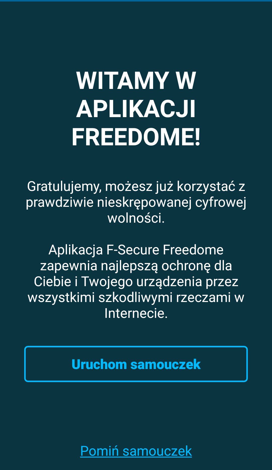 Tak jak wspomniałem na początku, F-Secure Freedome VPN jest dostępny również na smartfony i tablety z Androidem oraz iOS. Osobiście testowałem wersję aplikacji przeznaczoną na Androida i jest ona jeszcze prostsza w użytku niż ma to miejsce na komputerze. Od samego początku twórcy proponują samouczek, który można pominąć.