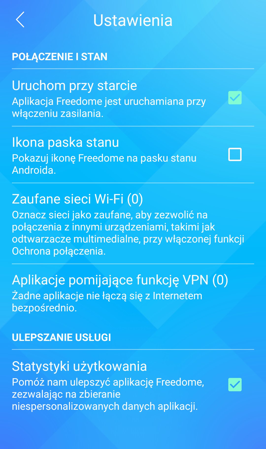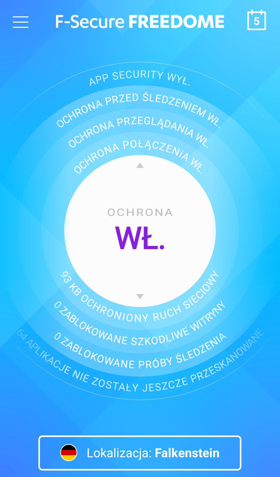 Panel ustawień nie jest może bogaty w opcje, jednak jest tu wszystko, czego nam potrzeba. Po włączeniu aplikacji działa ona w tle i nie musimy nic więcej robić. Wystarczy korzystać z sieci identycznie, jak robimy to na co dzień, a F-Secure wszystkim zajmie się za nas. W tym miejscu również możemy zmieniać lokalizację według własnego uznania.