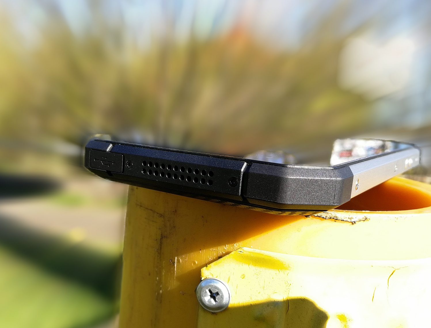 Warto także zwrócić uwagę na fakt, że złącza w tym urządzeniu są odporne na niekorzystne działanie cieczy, aczkolwiek dla bezpieczeństwa zostały zabezpieczone plastikowymi zaślepkami. Nie jest to specjalne wygodne rozwiązanie, gdyż wymaga od użytkownika zachowania ostrożności podczas odpinania „zaślepki”. Wpuszczenie portu microUSB (standard 2.0) w obudowę spowodowało, że niezbędny jest przewód z długą końcówką – na całe szczęście taki znajduje się w zestawie.