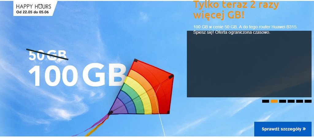 Czas na kolejne Happy Hours i dwa razy więcej Internetu w Cyfrowym Polsacie. W sklepie internetowym ruszyła kolejna edycja promocji, w której klienci mogą otrzymać aż 100 GB Internetu LTE Plus za 49,99 zł.