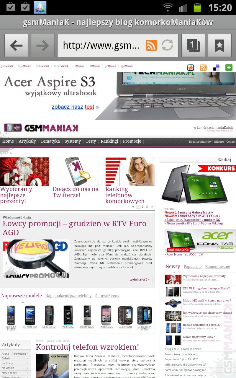 Mocna specyfikacja techniczna urządzenia w połączeniu z pięknie świecącym ekranem oraz szybkością Androida 2.3 Gingerbread prezentuje się świetnie. Usługi sieciowe nie wykazują tendencji do spowolnień, wszystko prezentuje się czytelnie zarówno w orientacji poziomej jak i pionowej, jednak przydatność rysika jest relatywnie mała. Wygodniej tapać w ekran palcami lub bazować na gestach, które prezentują się odrobinkę lepiej, aniżeli miało to miejsce w SGS 2. Muszę też pochwalić koreańskiego giganta za dobrą jakość dźwięku na usługach internetowych. Generalnie możemy tak sobie pisać o zaletach Note’a jeszcze dość długo, wad jest jak na lekarstwo, więc tylko dopowiem, że prawdopodobnie najlepsza w Polsce strona o telefonach komórkowych, na jakiej właśnie się znajdujesz czytelniku, prezentuje się nad wyraz okazale i działa w stu procentach poprawnie.