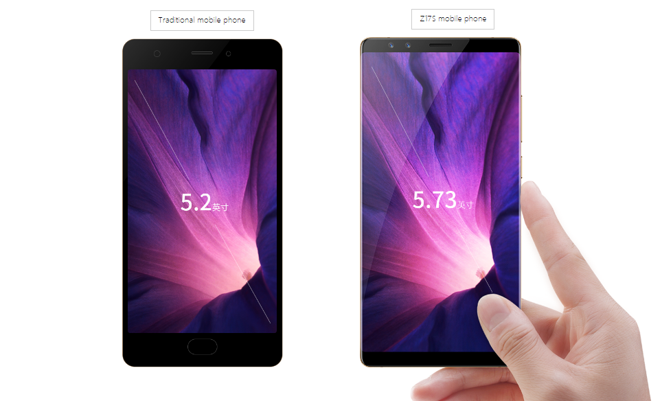 To jeszcze nie wszystko. Jak widzicie na załączonych grafikach, Nubia Z17S została stworzona w duchu wąskoramkowego wzornictwa. Producent podaje, że aż 90,36% całego przedniego panelu to ekran (tzw. screen-to-body ratio). Gdyby tak było w rzeczywistości, to Nubia Z17S zasłużyłaby na tytuł „najbardziej bezramkowego smartfona” na rynku.