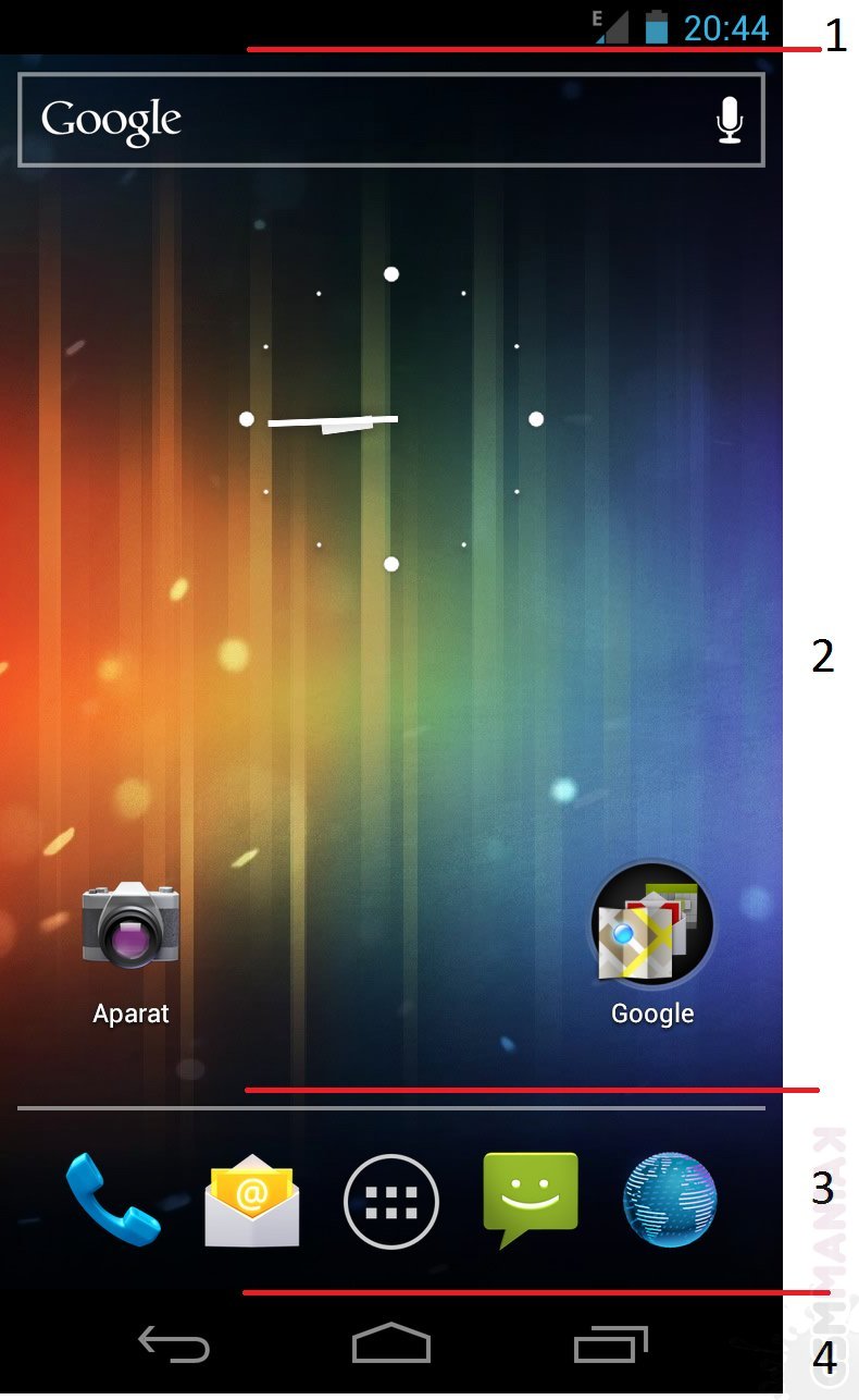 Android 4.0.1, bo na takiej wersji pracuje nasz smartfon (dostępna jest już wersja 4.0.3), to zupełnie nowy system operacyjny firmy Google, choć doświadczeni użytkownicy odnajdą w nim subtelne połączenie tabletowego Honeycomba 3.2 ze smartfonowym Androidem Gingerbread 2.3. Takie rozwiązanie wydaje się być zrozumiałe, gdyż Ice Cream Sandwich będzie stosowany w obu urządzeniach – smartfonach i tabletach. Interfejs systemowy musiał zostać więc tak skonstruowany, abyśmy nie mieli problemów z obsługą nowego Androida na małym, 4-calowym ekranie oraz sporym, 10-calowym. Stąd też pomysł o rezygnacji z fizycznych przycisków, które zastąpione zostały trzema ikonami w interfejsie systemowym – Back, Home oraz MultiTasking.