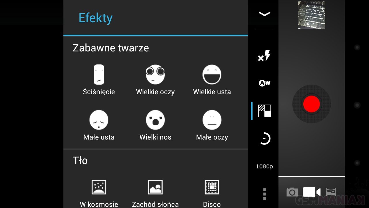 Oba aparaty pozwalają nam również na nagrywanie materiałów w jakości 720p, a główny aparat cyfrowy umożliwia kręcenie filmów Full HD. Gotowy materiał wideo możemy wysłać do programu Movie Studio, gdzie mamy możliwość edycji nagranego filmu. Na materiały wideo możemy nakładać również dodatkowe efekty (zabawne twarze) oraz specjalne tło. W przypadku, gdy zdecydujemy się na wykorzystanie dowolnego efektu, jakość nagrywanych filmów automatycznie spada do 480p.