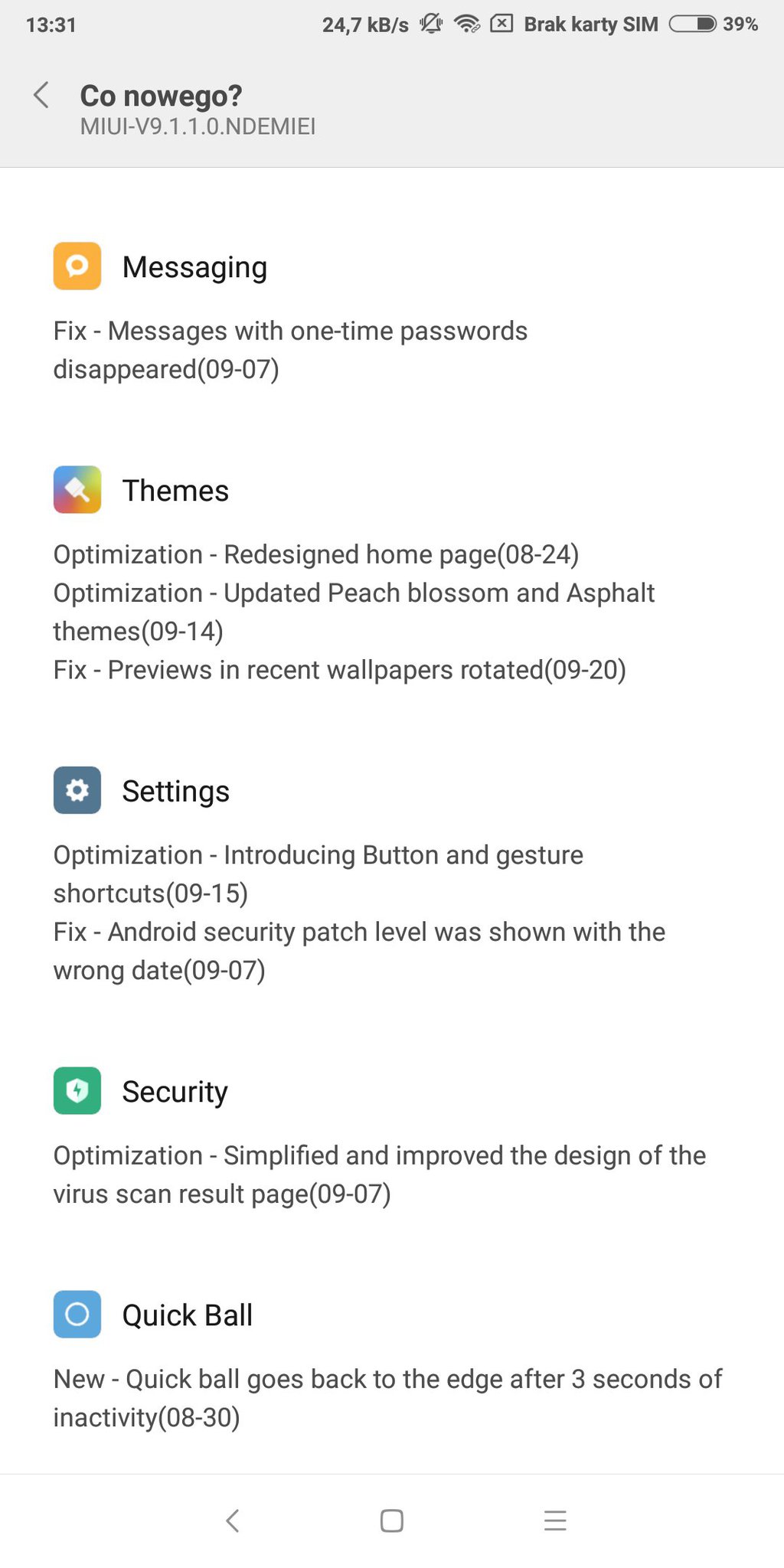 - nowsze poprawki bezpieczeństwa (z października, a nie z września),