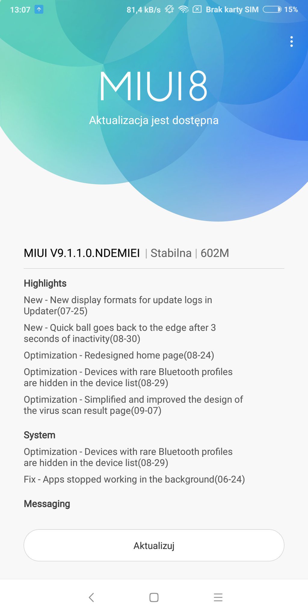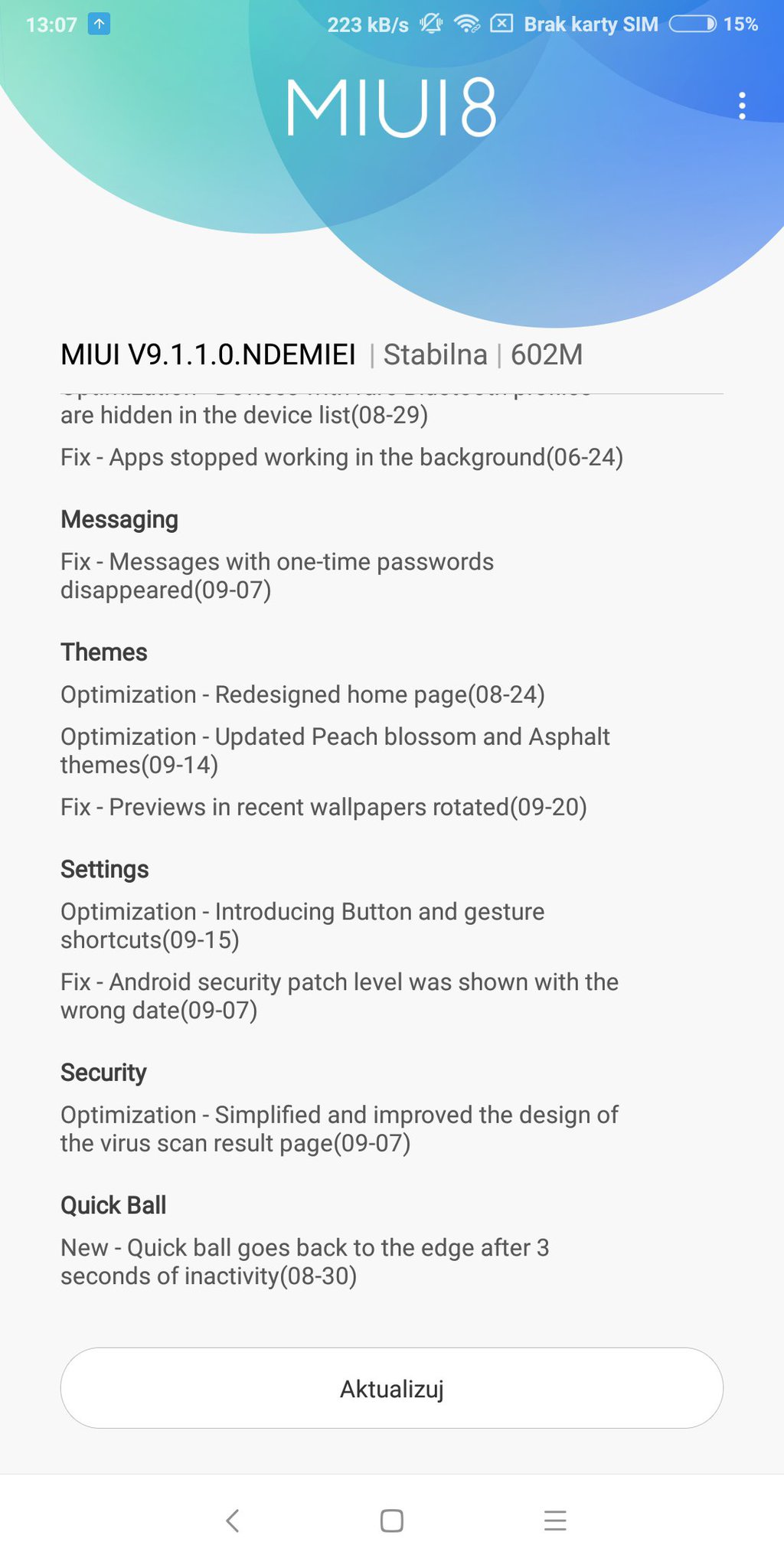 Jeśli czytacie nas regularnie to zapewne wiecie, że parę dni temu opublikowałem na łamach gsmManiaKa recenzję Xiaomi Mi Mix 2. Napisałem w nim, że mój egzemplarz testowy nie dostał jeszcze oficjalnej aktualizacji do MIUI 9. Zmieniło się to właśnie dziś, gdyż koło popołudnia Xiaomi Mi Mix 2 poinformował mnie o dostępności nowej wersji systemu.