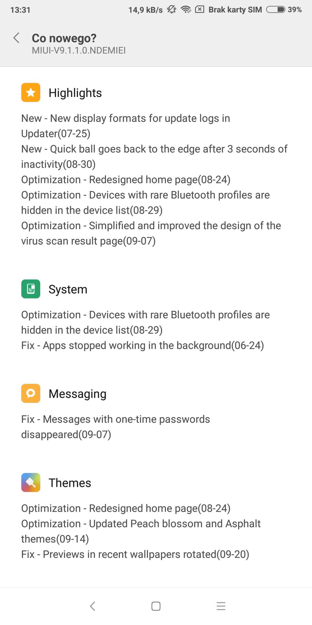 Xiaomi Mi Mix 2 otrzymał aktualizację do MIUI 9 Global Stable. Paczka z oprogramowaniem ważyła 602 MB, została podpisana ciągiem znaków MIUI V9.1.1.0.NDEMIEI i trafiła na mój egzemplarz kanałem OTA. Pełną listę zmian w języku angielskim znajdziecie na powyższych zrzutach ekranu. W skrócie prezentują się one następująco: