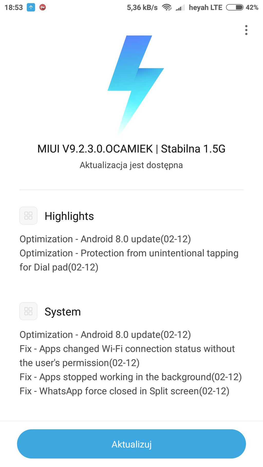 Nadeszła wiekopomna chwila – Xiaomi udostępniło oficjalną aktualizację do Androida Oreo dla Xiaomi Mi 6. Paczka została podpisana ciągiem znaków V9.2.3.0.OCAMIEK, waży 1,5 GB i jest wysyłana do użytkowników kanałem OTA. Mój Xiaomi Mi 6 zgłosił dostępność aktualizacji wczoraj wieczorem i od tamtej ciągle się zastanawiam, czy aby na pewno warto ją zainstalować.