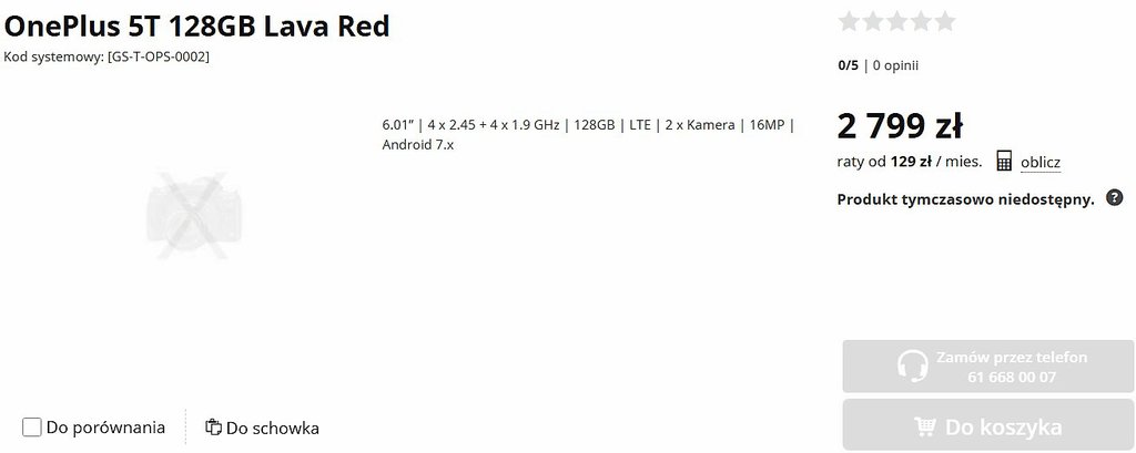 - OnePlus 5T 8GB/128GB Lava Red – 2799 złotych,