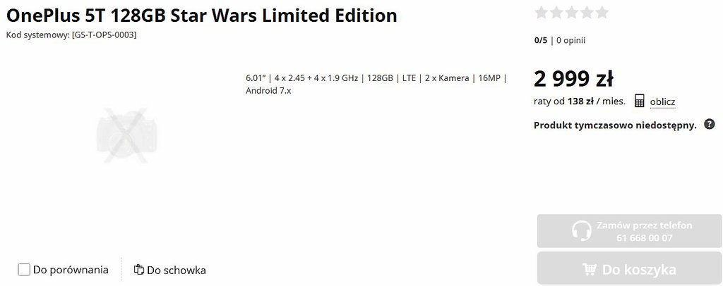 - OnePlus 5T 8GB/128GB Star Wars Limited Edition – 2999 złotych.