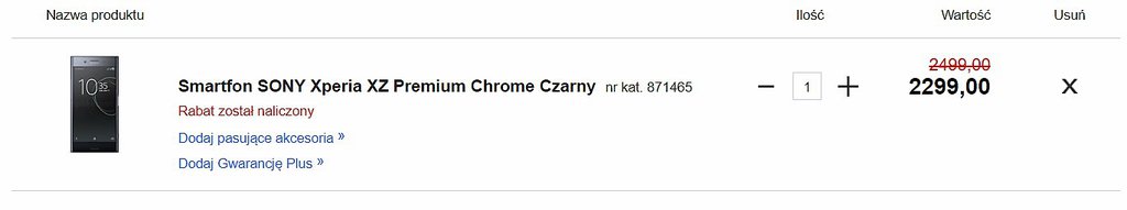Sony Xperia XZ Premium jest sprzedawana w Polsce już od 9 miesięcy, ale mimo to nie doczekała się do tej pory brawurowej obniżki ceny. Na początku smartfon kosztował 3199 złotych, a do niedawna można go było kupić za 2699 złotych. Teraz pojawiła się okazja, by wejść w posiadanie tego modelu aż 400 złotych taniej.