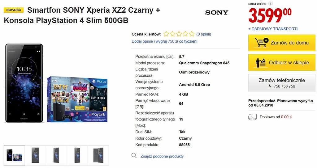 Zacznijmy może od przyjemniejszej informacji, która jest potwierdzeniem naszego raportu sprzed 3 dni. Jako pierwsi w Polsce informowaliśmy, że te osoby, które zdecydują się na złożenie przedsprzedażowego zamówienia na telefon Sony Xperia XZ2, dostaną w prezencie konsolę PlayStation 4 Slim 500 GB z trzema grami PlayLink (Ukryty Plan + Wiedza to Potęga + To jesteś Ty). Rynkowa wartość tego zestawu to 1270-1400 złotych, więc mówimy o naprawdę wartościowym bonusie.