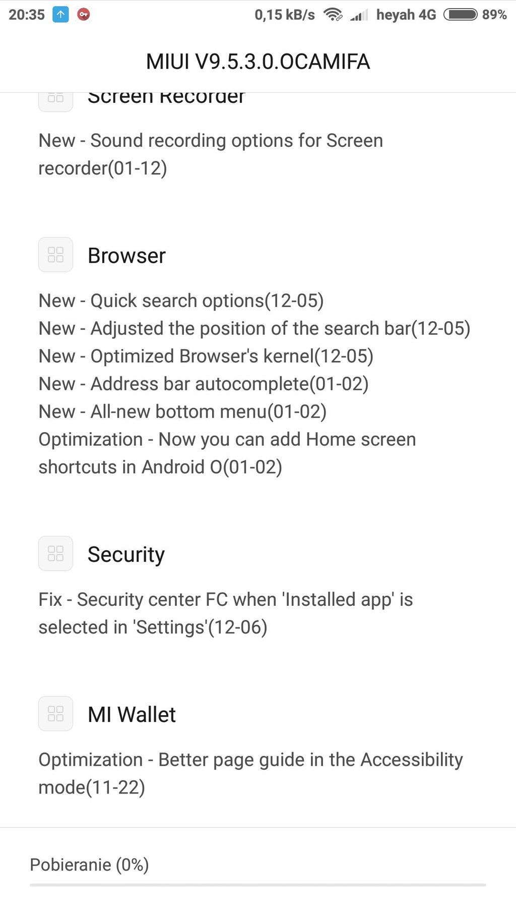 Pierwsi użytkownicy informowali, że MIUI z Oreo niezbyt dobrze sprawdzało się na Xiaomi Mi 6. Donoszono o wielu różnych problemach i błędach, głównie małych, ale w większości denerwujących. Postanowiłem poczekać z instalacją oprogramowania V9.2.3.0.OCAMIEK, aż w pewnym momencie aktualizacja została wycofana. W międzyczasie dowiedziałem się, że wybrani użytkownicy dostają MIUI V9.5.3.0.OCAMIFA w wersji Nightly (zapowiadane MIUI 9.5), przy wyborze regionu na Rosję. Tym razem zaryzykowałem i na Xiaomi Mi 6 trafił Android Oreo.