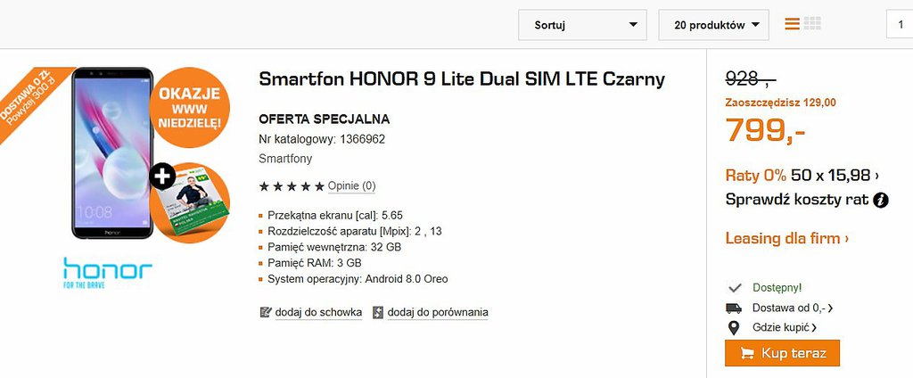 Na ile wycenisz ten zestaw cech? Początkowo polski oddział chciał 999 złotych, ale teraz standardowa cena Honora 9 Lite to 900-930 złotych. Tymczasem w dwóch sklepach da się kupić ten telefon zauważalnie taniej.