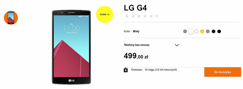 W sklepie Orange bez umowy kupimy obecnie LG G4 (różne kolory, ale bez klapki ze skórą) i LG G Flex 2 (tylko szary) za jedyne 499 złotych. To cena jak najbardziej przyzwoita – w końcu mówimy o flagowcach, choć z 2015 roku. Na dodatek smartfony są objęte gwarancją producenta na okres 24 miesięcy.