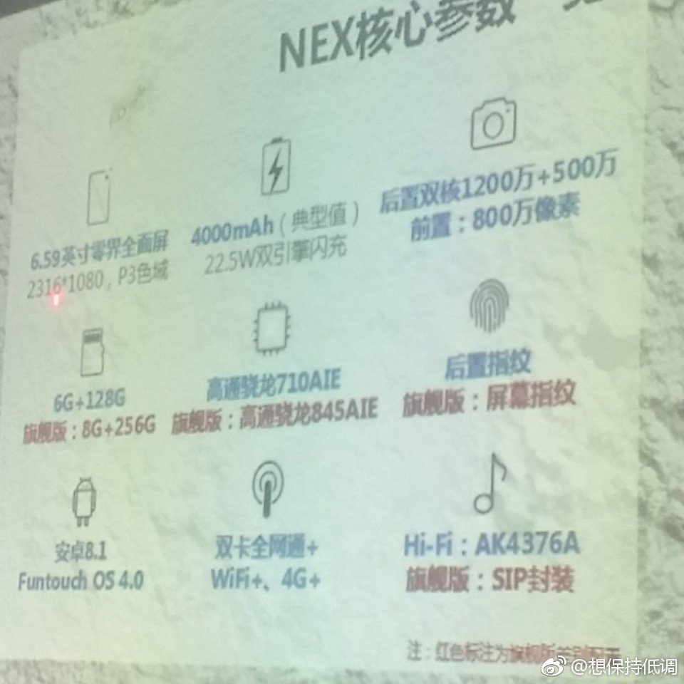 Jeden z certyfikatów sugeruje, że Vivo NEX trafi na rynek w trzech wersjach: Vivo NEX A, Vivo NEX i Vivo NEX S. Topowym, najlepszym modelem będzie Vivo NEX S, którego specyfikacja pojawiła się w sieci: