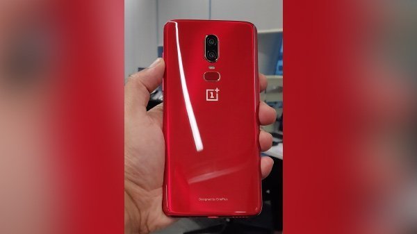 OnePlus 6 błyszczącym, czerwonym kolorze