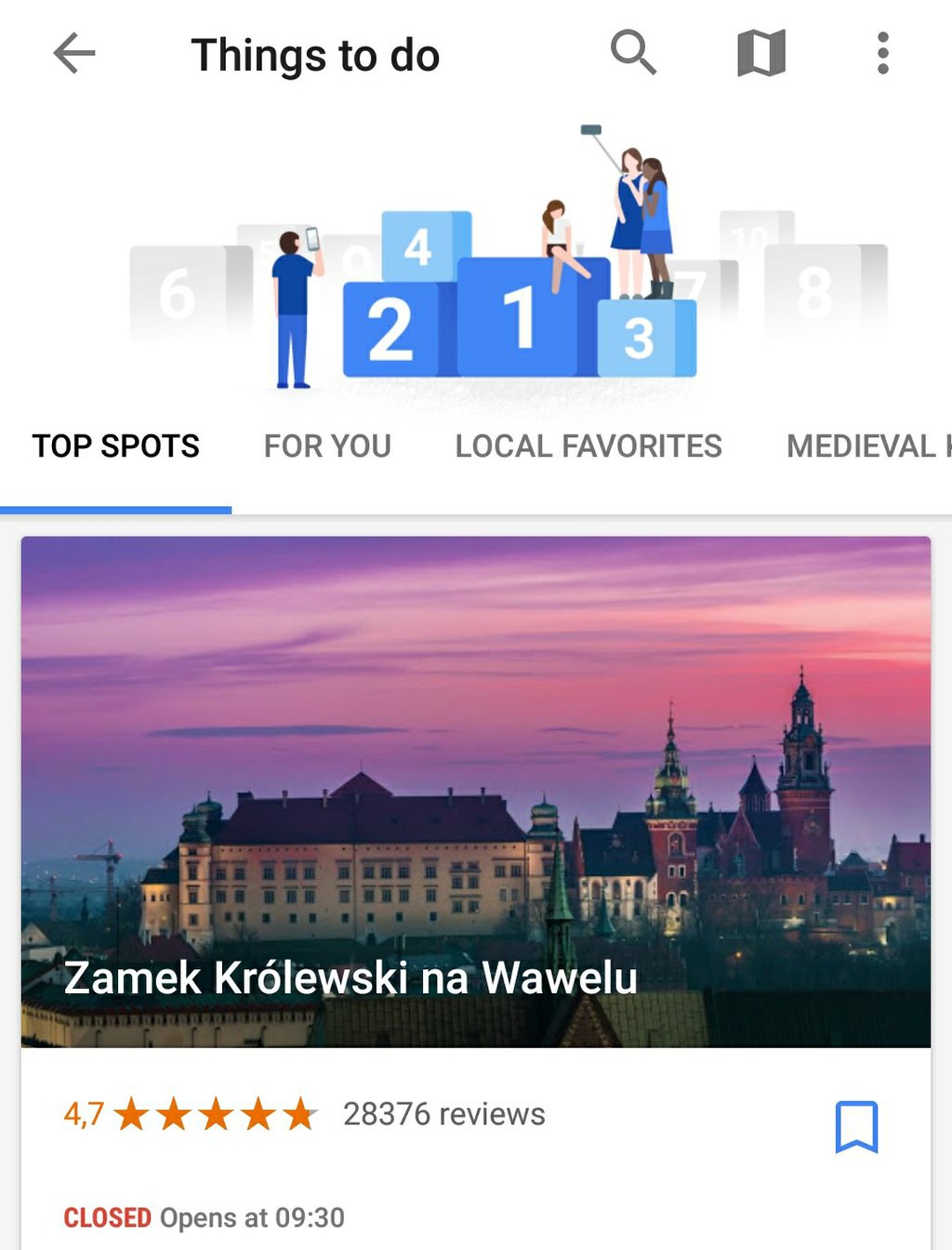 Sprawdziliśmy — działa to bardzo sprawnie na przykładzie wypadu do Krakowa. Google Trips to must have podczas wyprawy do dużego miasta.
