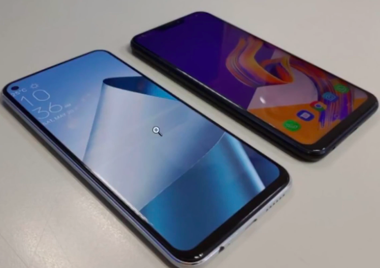 Widzimy tutaj co najmniej dwie wersje: z małym notchem, ale za ułożonym niesymetrycznie (odważne rozwiązanie, choć mnie doprowadzałoby do szału), oraz z „dziurką” w lewym górnym rogu ekranu, w której znalazłby się aparat do selfie (również niesymetryczne, ale irytuje jakby mniej). Na ostatnim zdjęciu widzimy ASUS’a Zenfone 6 obok modelu Zenfone 5Z, co daje nam pewne wyobrażenie o specyfikacji.