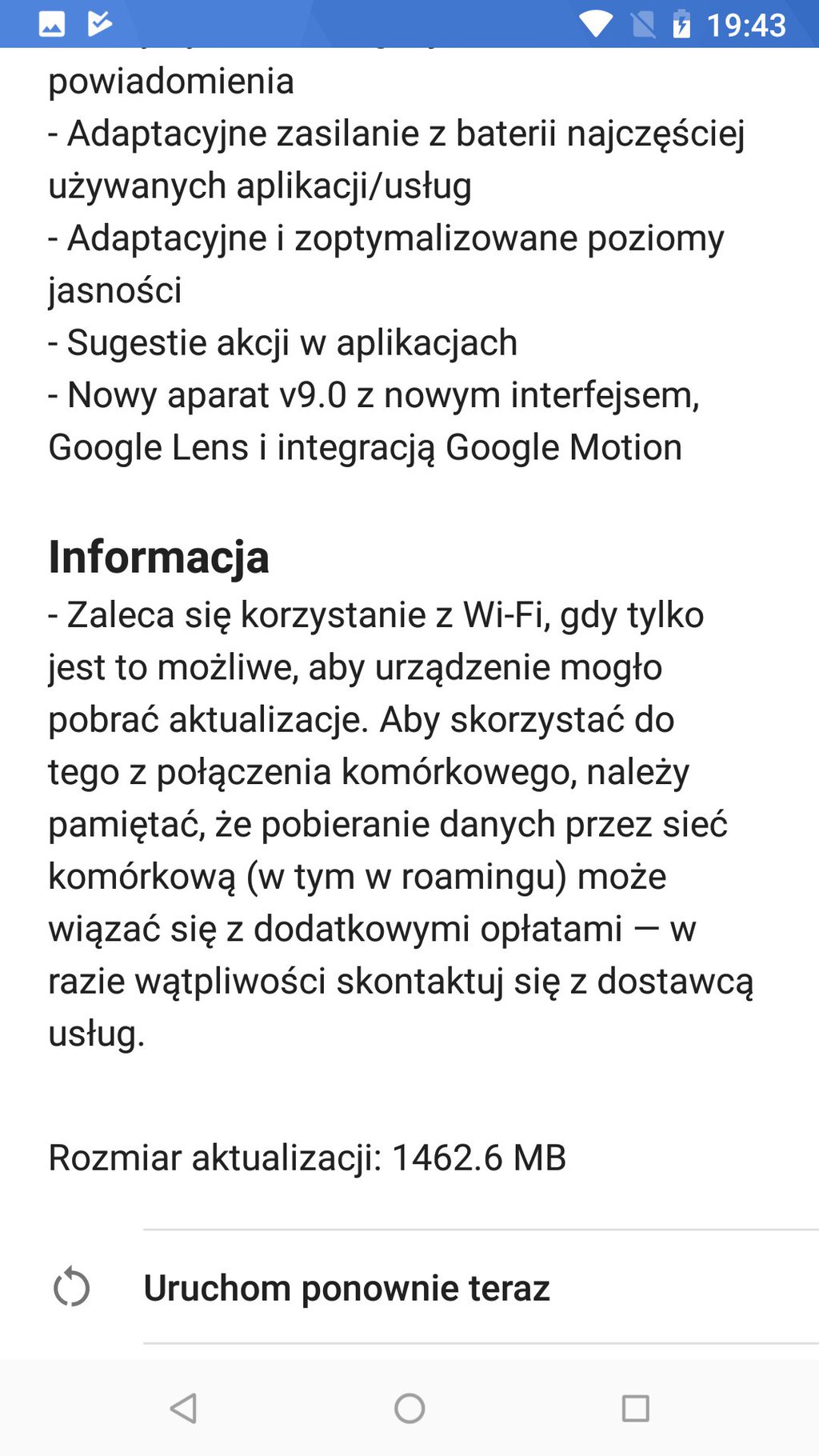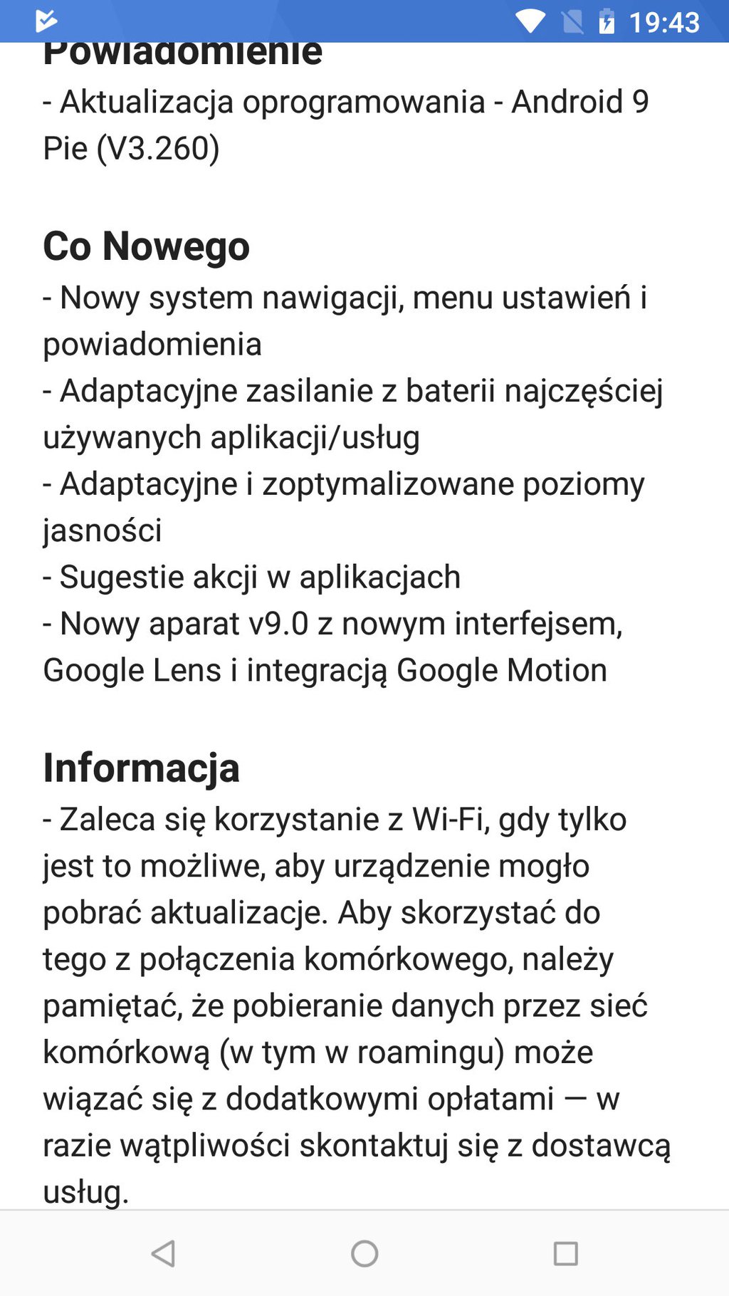 Z Nokii 6.1 2018 korzystałem jeszcze przez jakiś czas po zakończeniu testów – recenzję już od jakiegoś czasu możesz przeczytać na gsmManiaK.pl. Wczorajszego wieczora otrzymałem powiadomienie o aktualizacji do Androida Pie. Całkiem niezłe tempo, jak na smartfona za 1000 złotych.