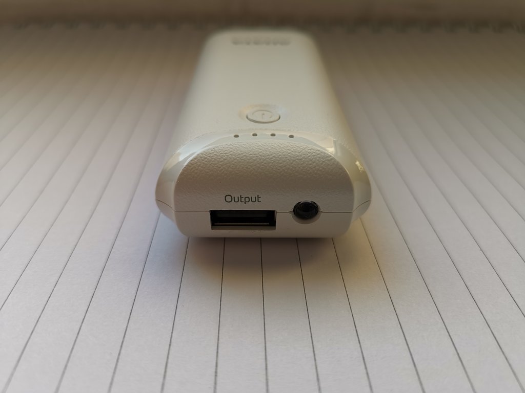 Zaczynając od budowy powerbanka, został on wykonany z jednego bloku tworzywa sztucznego, które producent oferuje w sześciu wersjach kolorystycznych. Do mnie trafiła biała, która jest moim zdaniem najbrzydsza. Na plus zaliczam natomiast odporność na zabrudzenia i przyjemną w dotyku fakturę.