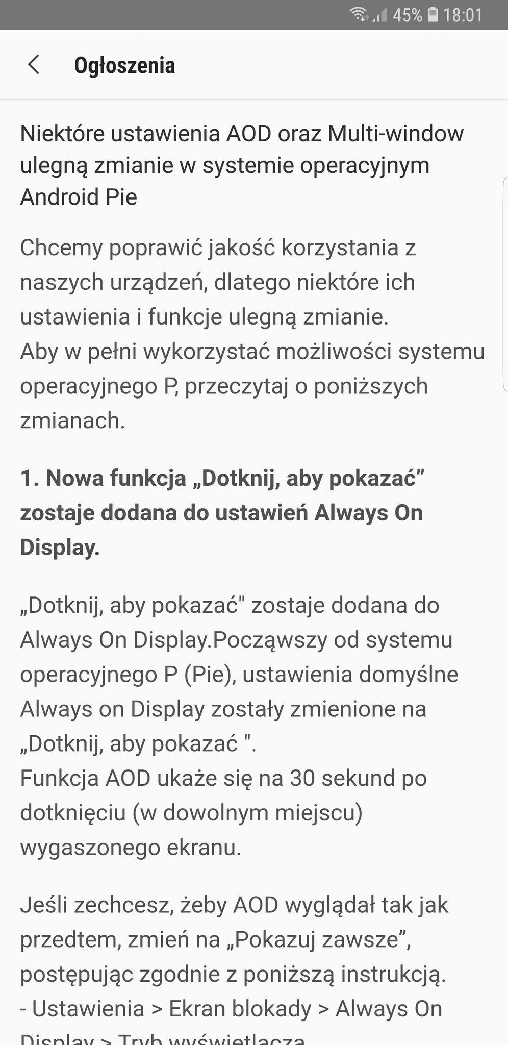 Funkcja Always On Display w smartfonach Samsung doczeka się ciekawej nowości, która zostanie wprowadzona razem z Androidem Pie. Jako użytkownik Galaxy Note 9 stwierdzam, że właśnie na to czekałem!
