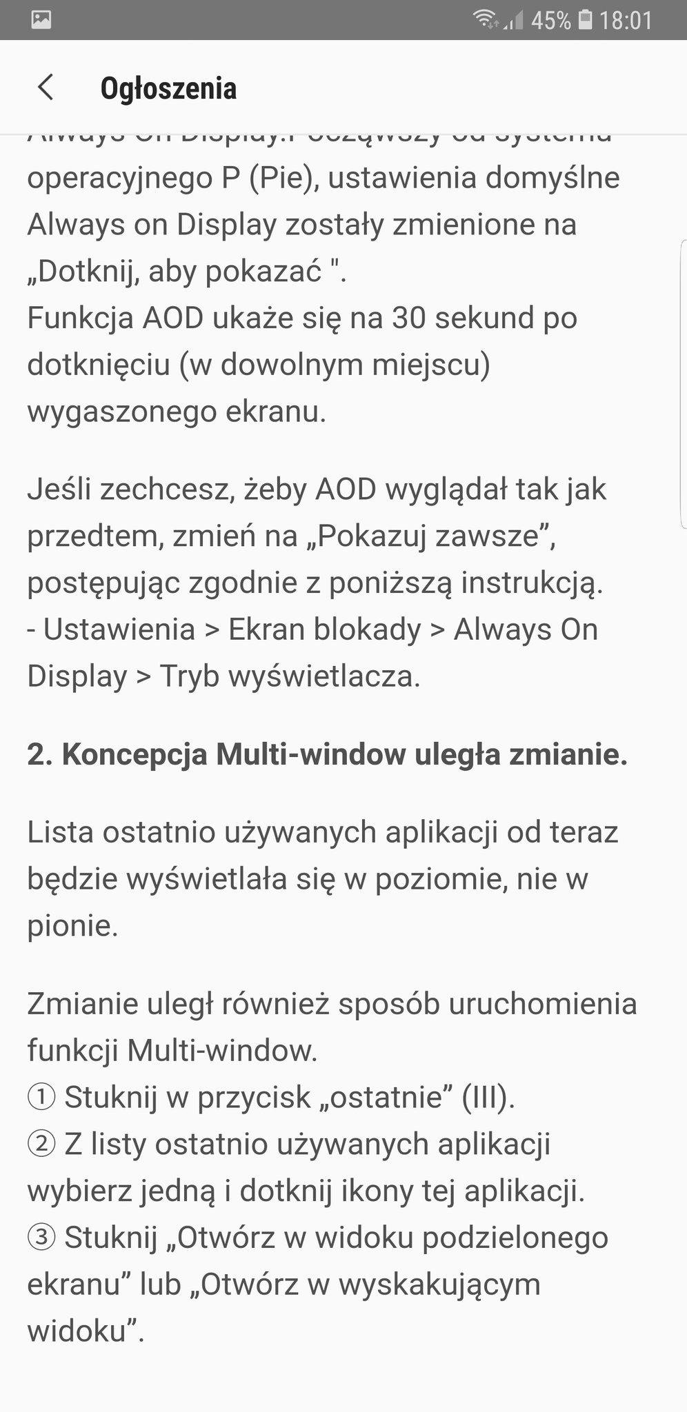 Razem z Pie Samsung nie tylko doda „Dotknij, żeby pokazać” w AoD, ale także zmodyfikuje działanie Multi-window. To nic innego, jak możliwość korzystania z dwóch aplikacji na raz poprzez podział ekranu.