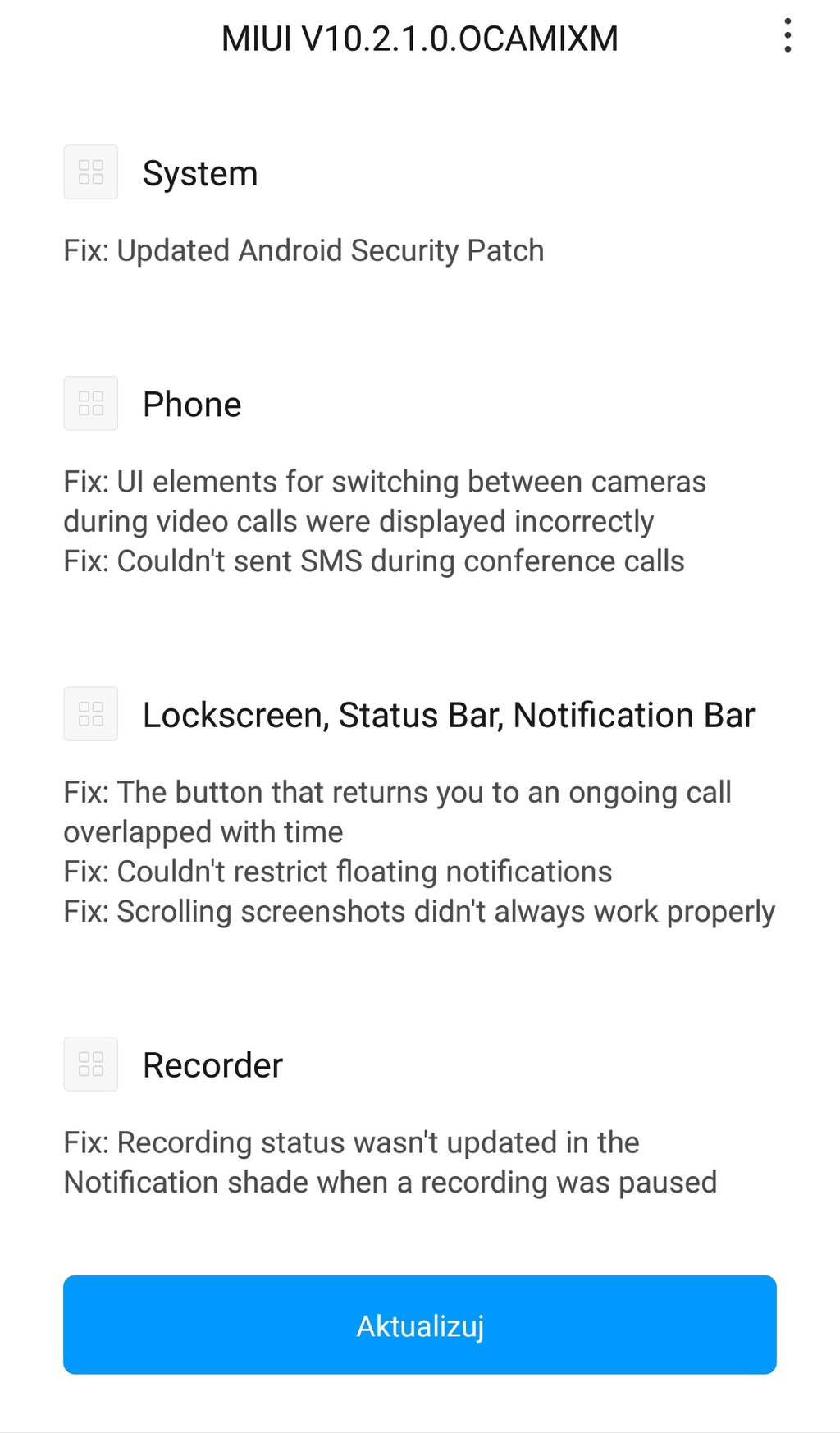 Lista wprowadzonych zmian jest stosunkowo krótka i nie uwzględnia zmiany wersji systemu Android, więc MIUI 10.2.1.0 dla Xiaomi Mi 6 ciągle oparte jest o Androida Oreo. Czy model ten kiedykolwiek dostanie Pie? Trudno powiedzieć, gdyż jak na razie producent nie potwierdził tego jednoznacznie.