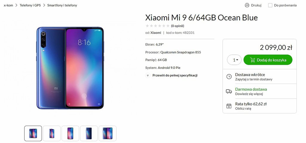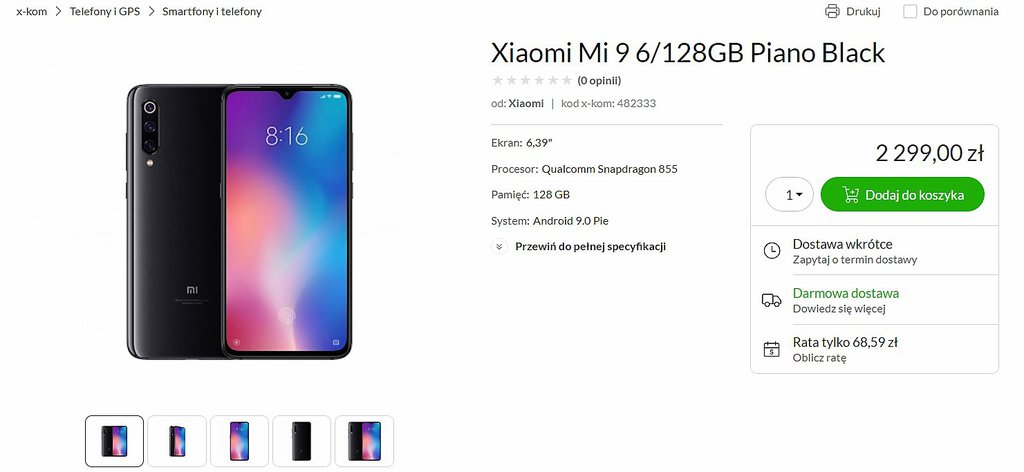 Xiaomi Mi 9 w x-kom nie da się jeszcze zamówić (choć przez chwilę się dało) – na rozpoczęcie sprzedaży trzeba będzie poczekać kilka dni, może kilkanaście. Kto nie chce czekać, może zamówić Xiaomi Mi 9 na Amazonie – powinno być szybciej i ciut taniej.