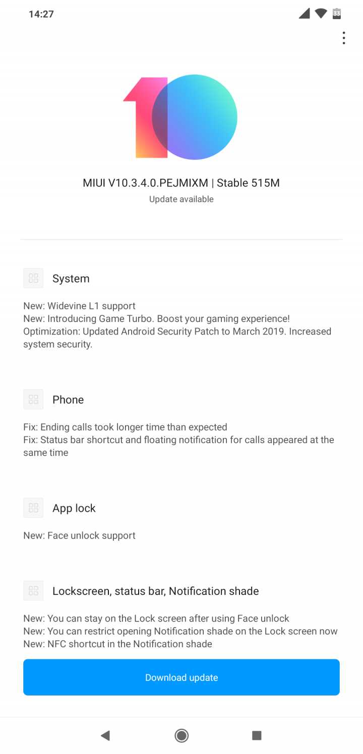 Najnowsze oprogramowanie dla POCOPHONE F1 nosi oznaczenie MIUI V10.3.4.0 PEJMIXM, której rozmiar to ponad 500 MB. Paczka jest udostępniana kanałem OTA, więc powinna byćdostępna z poziomu ustawień telefonu. Uwaga – aktualizacja udostępniana jest falowo, więc nie każdy właściciel tego telefonu dostanie ją w tym samym czasie. Wiele może zależeć od konkretnego regionu.