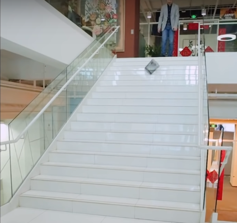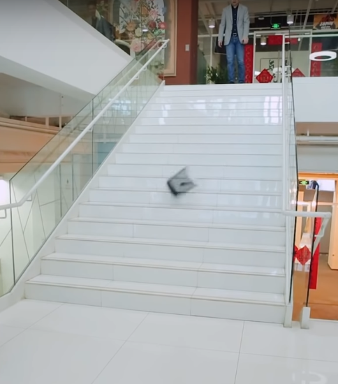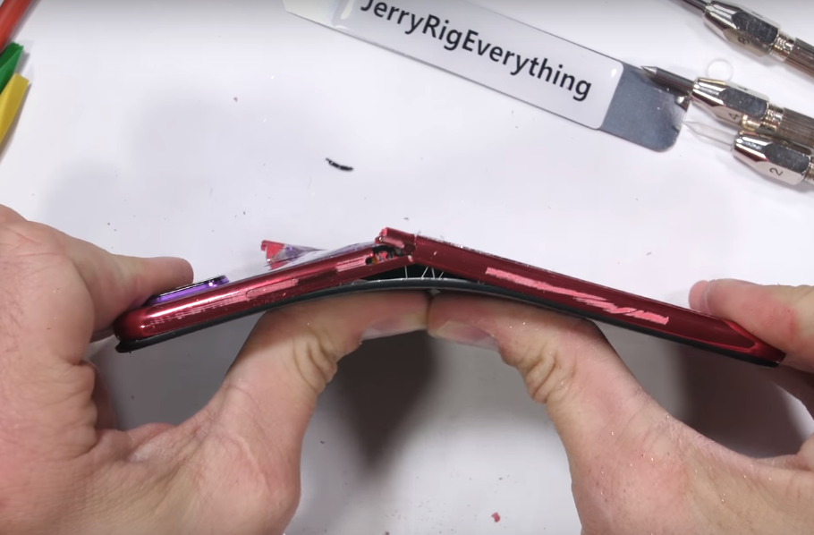 Producent zapakował telefon w metalowy kosz i bezceremonialnie zrzucił ze schodów, a następnie wyciągnął go i zaprezentował wciąż sprawny ekran. Wszystko byłoby idealnie, gdyby obudowę pokazano z bliska i zaprezentowano prawdziwe efekty niniejszej próby.